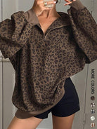 Cozy Leopard Print Zip-Up Sweatshirt for Fall - Effortless Style