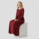 Clara maxi dress exudes pure elegance and is the perfect choice for stylish appearances. With its deep emerald green color, elegantly cut 3/4-length sleeves, and flowing full-length skirt, the dress impresses with timeless beauty. The defined waist with a tie belt accentuates a feminine silhouette, while the simple round neckline adds a classic touch to the design. Perfect for galas, evening events, or elegant gatherings – this dress will make you shine.